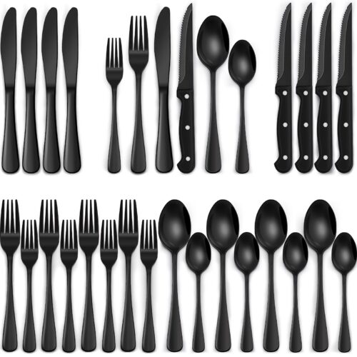 24-Piece Black Silverware Set with Steak Knives